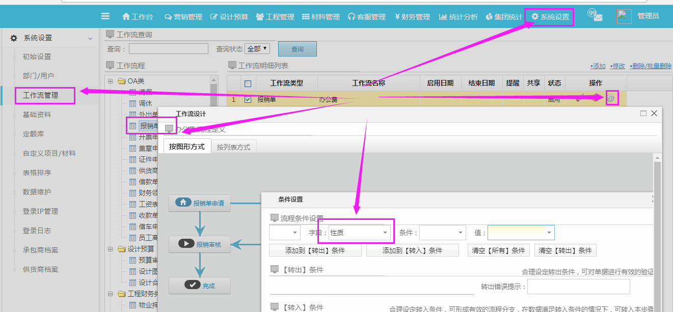 第一步:在崗位管理---基礎資料---其他屬性【將報銷性質功能開通】